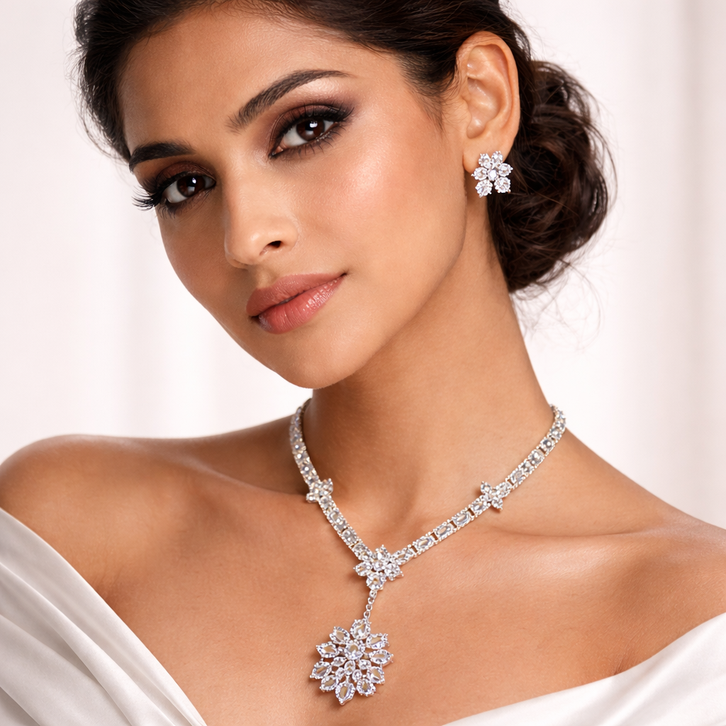 Premium Cubic Zirconia Necklace & Earrings Set